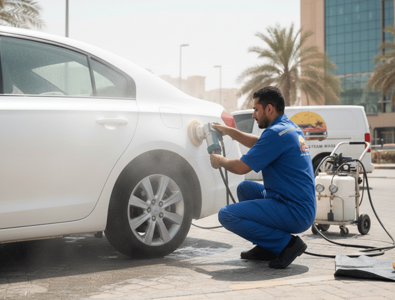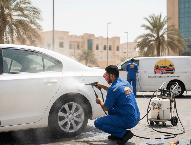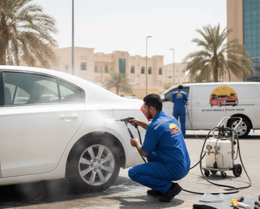 غسيل بخار خارجي وتلميع ساطع داخلي لعند باب بيتك حصرياً بالرياض